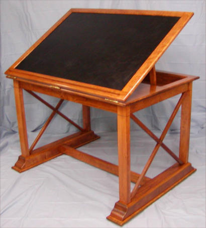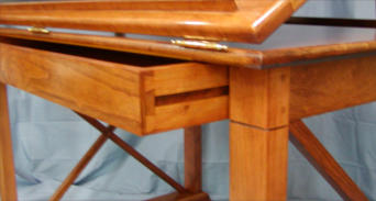 This desk features an adjustable drafting board which can be set at several different angles depending on