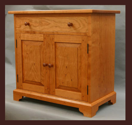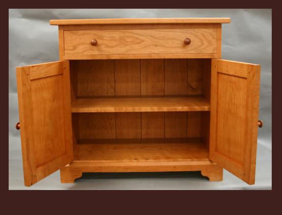 This is a small dining room cabinet constructed from wide board, grain matched cherry sawed sequentially from
