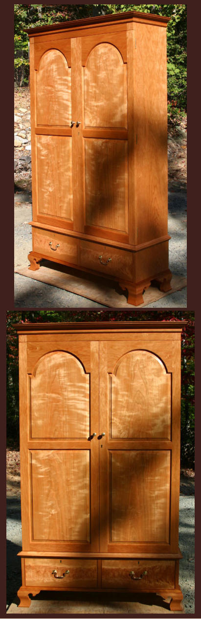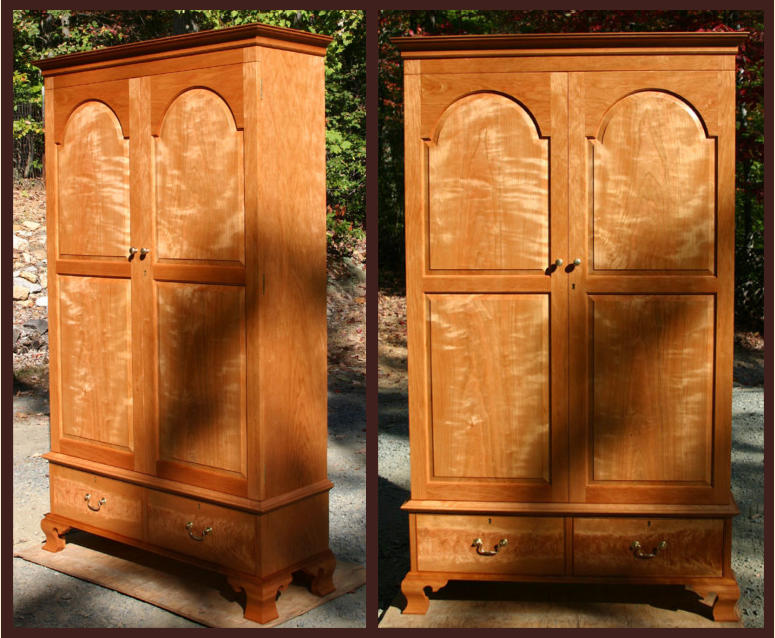 matched cherry for the primary wood - with beautiful, highly figured curly cherry for the raised door panels and