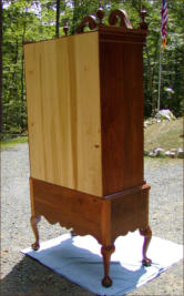 This highboy was finished with a hand rubbed shellac finish - then buffed and waxed to a satiny sheen.