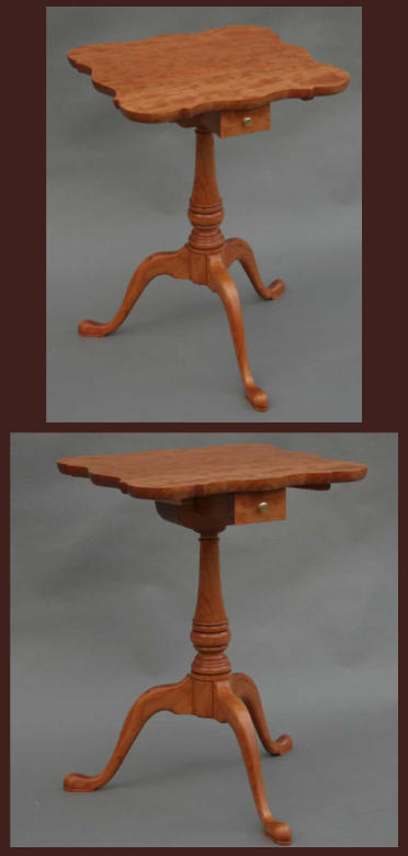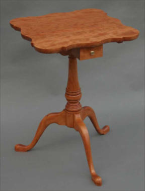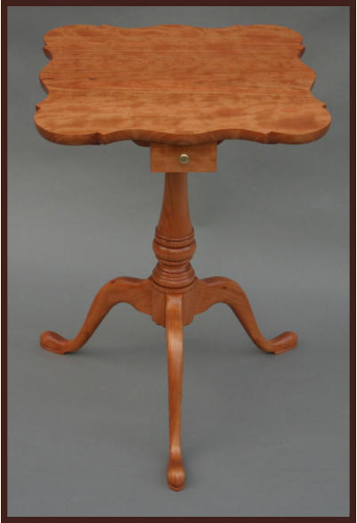 The scalloped top candlestand shown below was constructed from solid cherry. The top is approximately 18" x