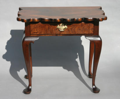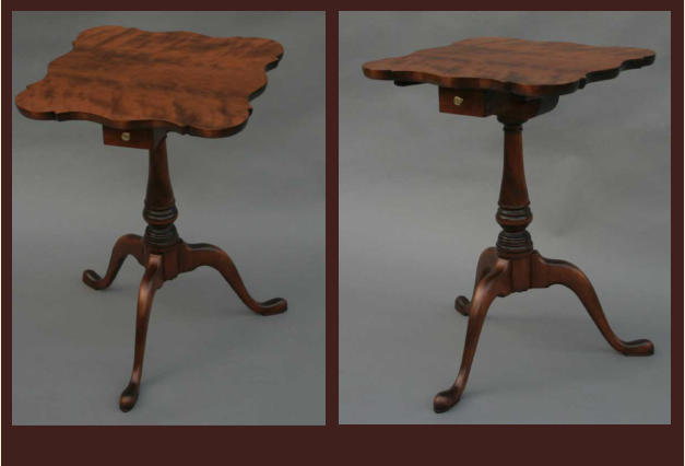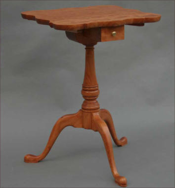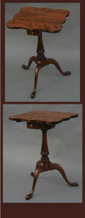 single wide board and the edges of the scalloped top are shaped by hand to a graceful curve. The candlestand