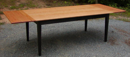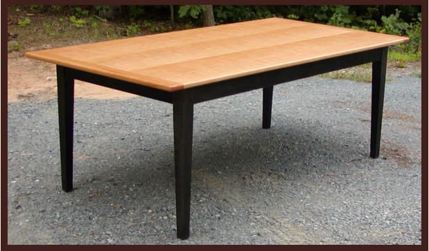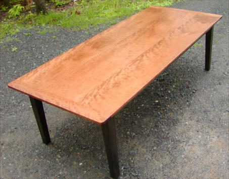 aprons, and a black stain or ebonizing. The table top was constructed from solid curly cherry and features