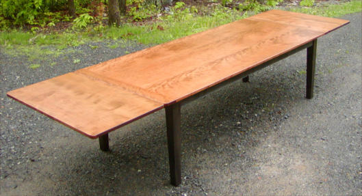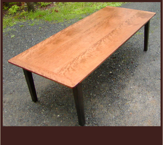This curly cherry dining table was designed in the Country Hepplewhite style for a customer who wanted a large,