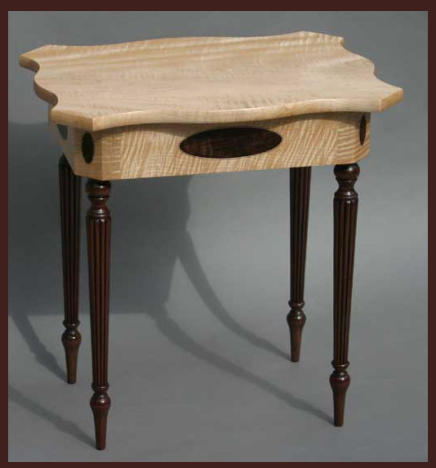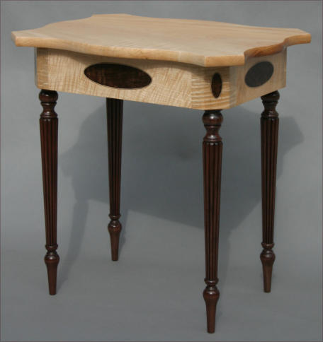 The side table shown below was constructed in a Federal style from solid tiger maple and black walnut - this table