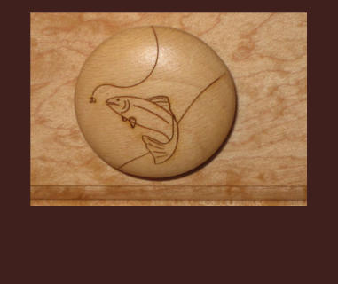 Wooden Knobs have laser etched trout and fly design - other styles of hardware available.