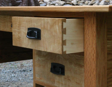 on the sides & back show continuous grain as they wrap around the desk. All of the drawers feature handcut