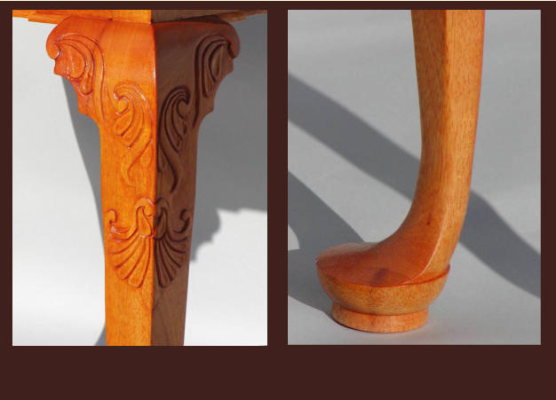 Newport style cabriole legs with hand carved knees on the front legs.