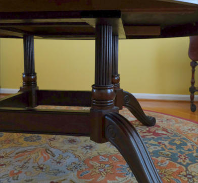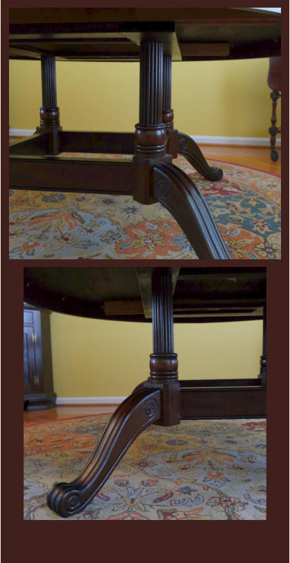 mechanism to allow the use of two 12" wide center leaves. The table base is constructed with traditional mortise