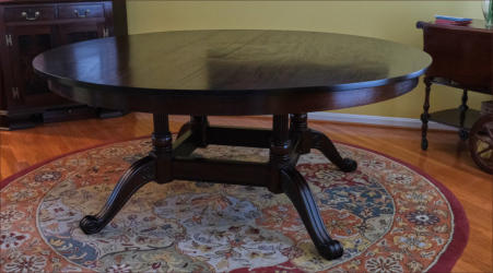 base are constructed from a matched set of wide, solid mahogany. The table has a curved apron which follows the