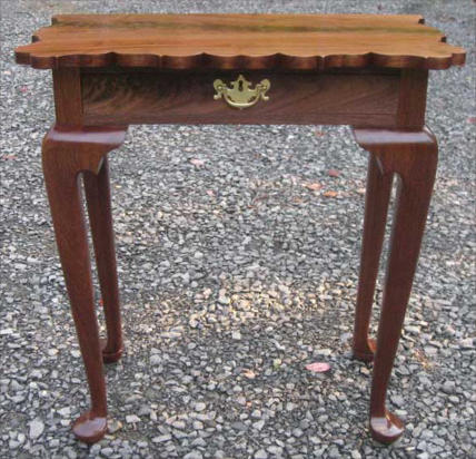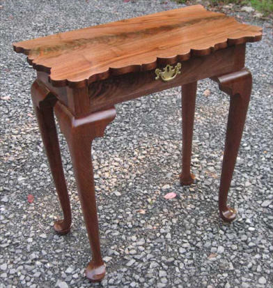 The hall or side table shown below was constructed in a Queen Anne style from solid walnut with a single board