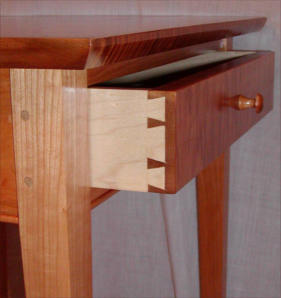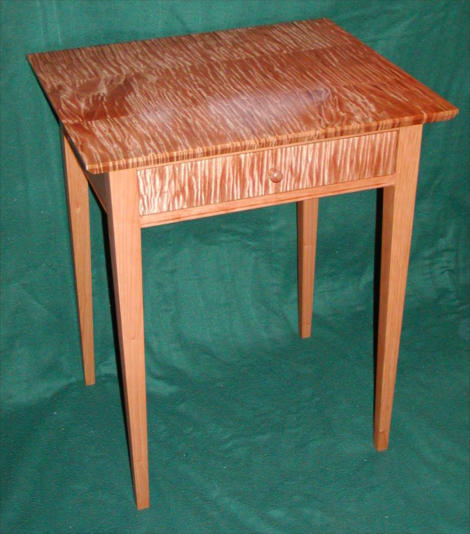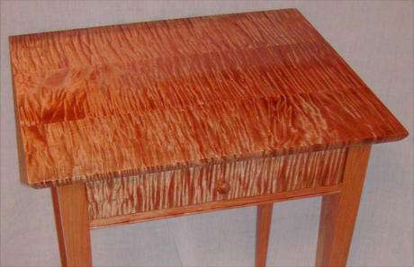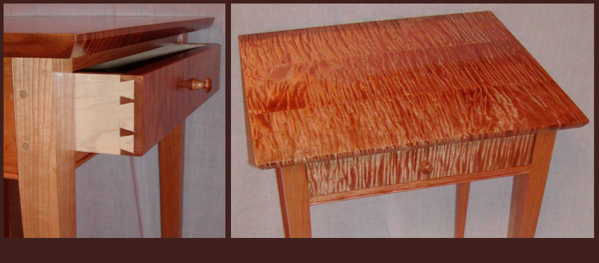Primary construction is solid cherry base with tiger maple top and drawer front.