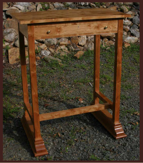 traditional hardware. The legs of the desk end in a solid cherry sled foot which adds stability to the design. The