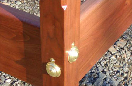 Rails joined to the posts with traditional bed bolts - bolt covers are available in a wide variety of styles and